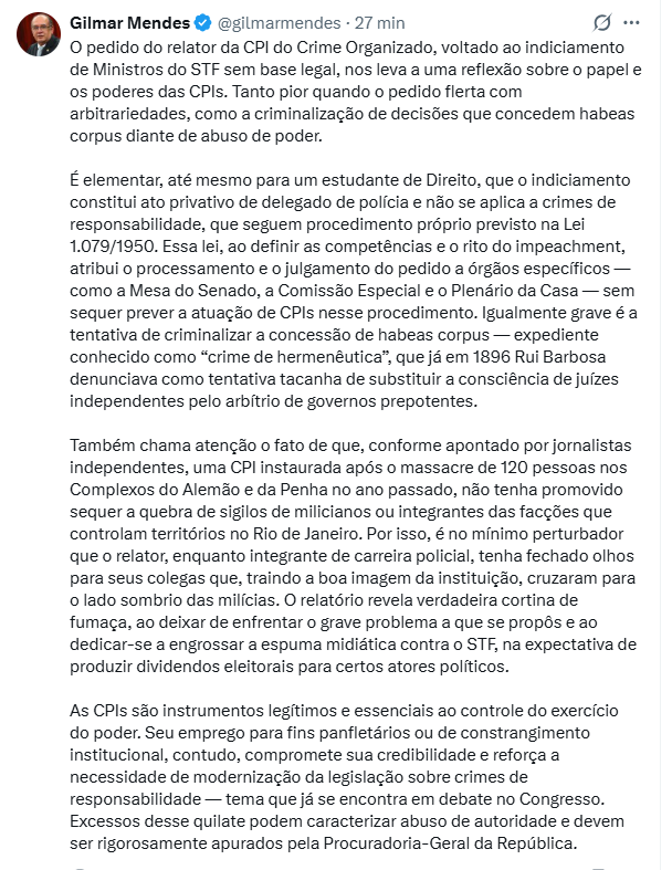 De acordo com a decisão, a publicação utilizava inteligência artificial para simular um diálogo fictício envolvendo o próprio Orleans, em um formato conhecido como “deep fake”. O material, segundo a relatora, apresentava “nítida intenção de macular a imagem” do pré-candidato, além de violar regras eleitorais ao não informar o uso de conteúdo sintético.