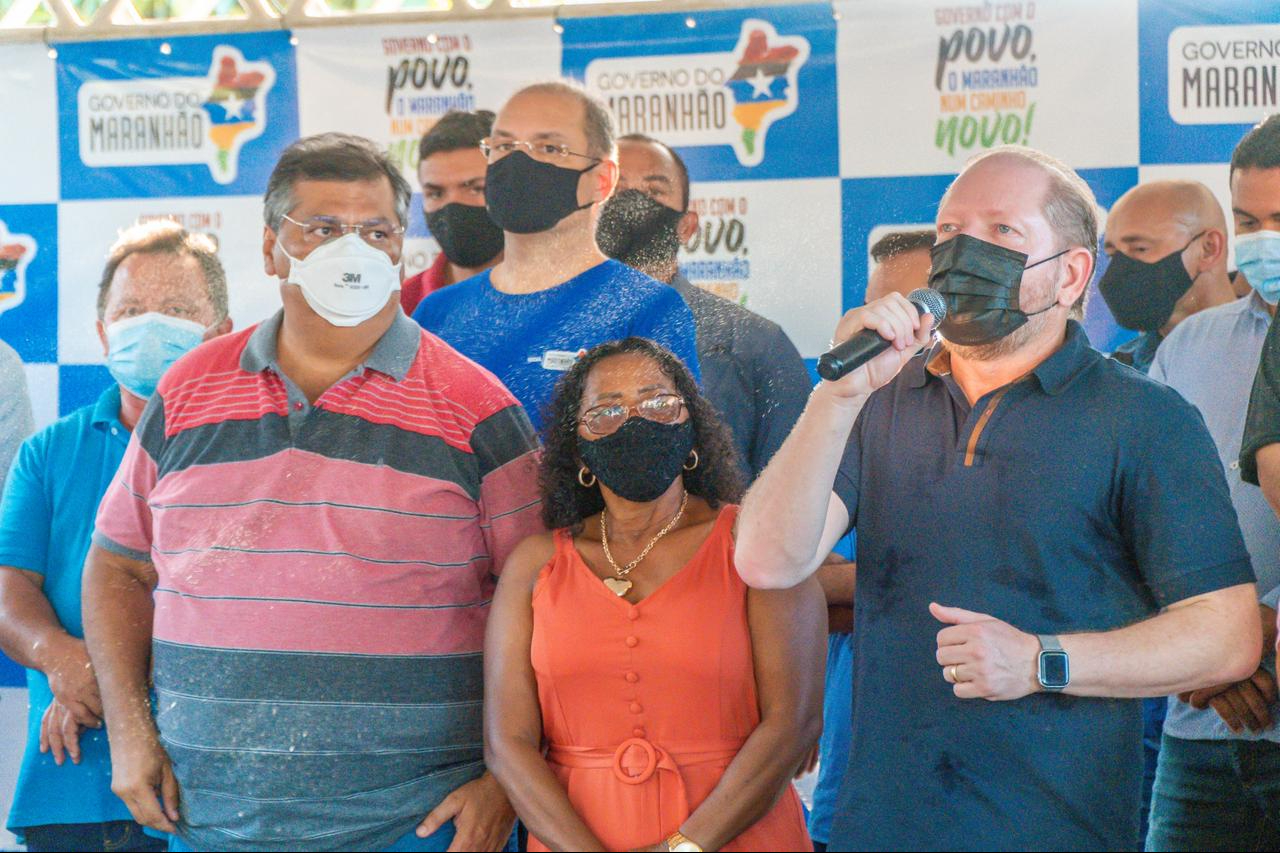 O deputado Othelino Neto (PCdoB), presidente da Assembleia Legislativa do Maranhão, ao lado do governador Flávio Dino (PSB), na sexta-feira, dia 6, assinou a ordem de serviços de pavimentação asfáltica no município de Santo Amaro.