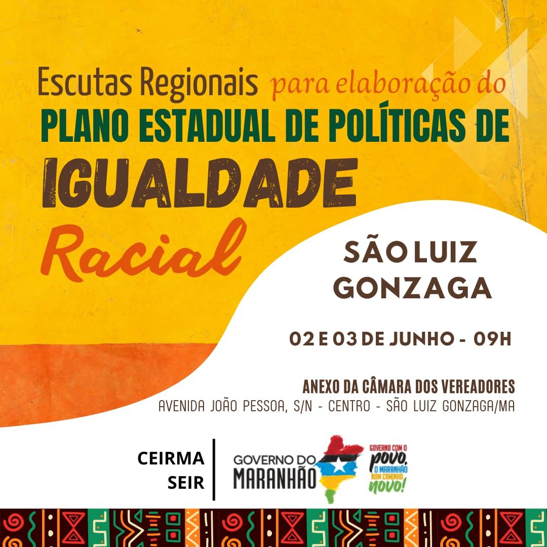 O município de São Luís Gonzaga do Maranhã, na região do Médio Mearim, participará e sediará nos dias 2 e 3 de junho, das próximas etapas das escutas para elaboração do Plano Estadual de Igualdade Racial.