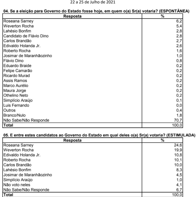 Mesmo considerando a metodologia de cada pesquisa, chama atenção o fato da Exata revelar um cenário de consolidação das eleições em dois turnos com pequena diferença entre Carlos Brandão e Weverton Rocha, enquanto a Econométrica/O Imparcial mostrou uma forte possibilidade do governador ser reeleito no 1º turno.