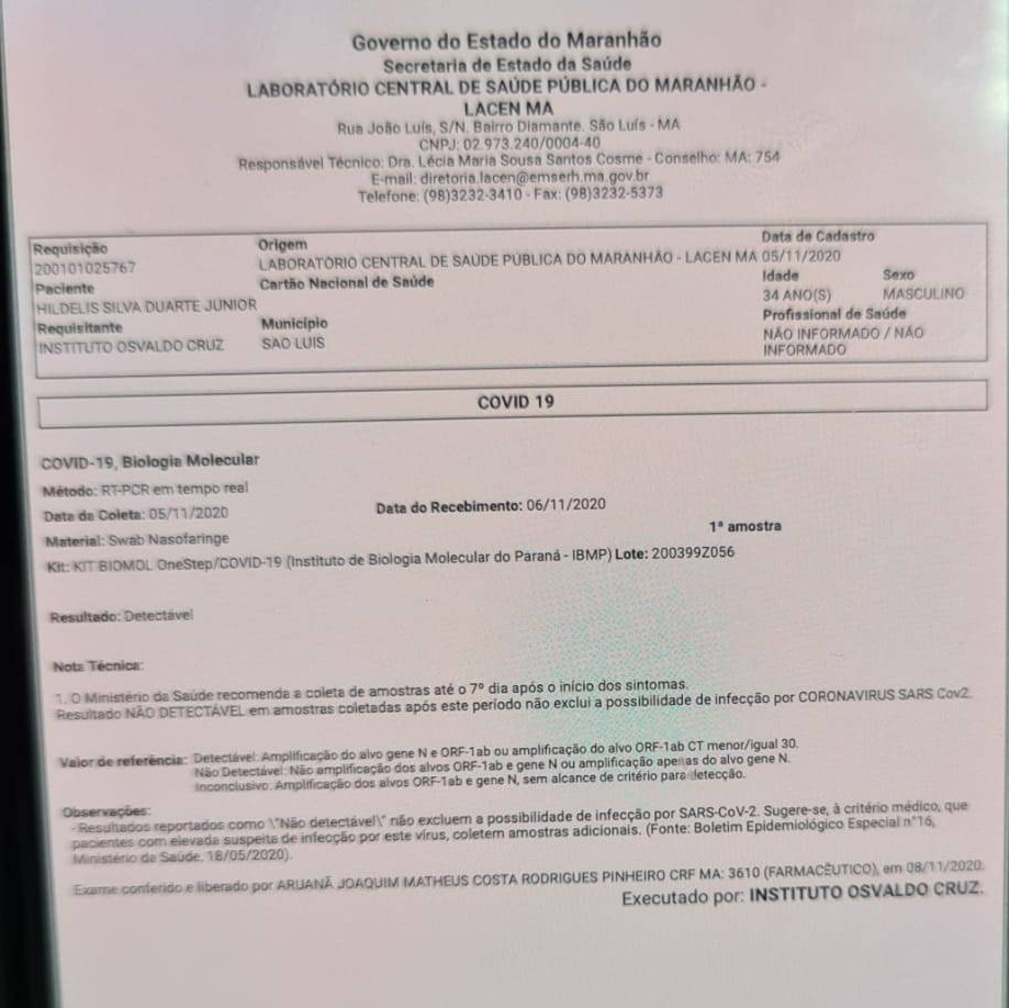 Informo que nunca estive no LACEN, não coletei exames neste local e para esse laboratório. Portanto, são falsos e inverídicos os laudos que estão sendo divulgados.