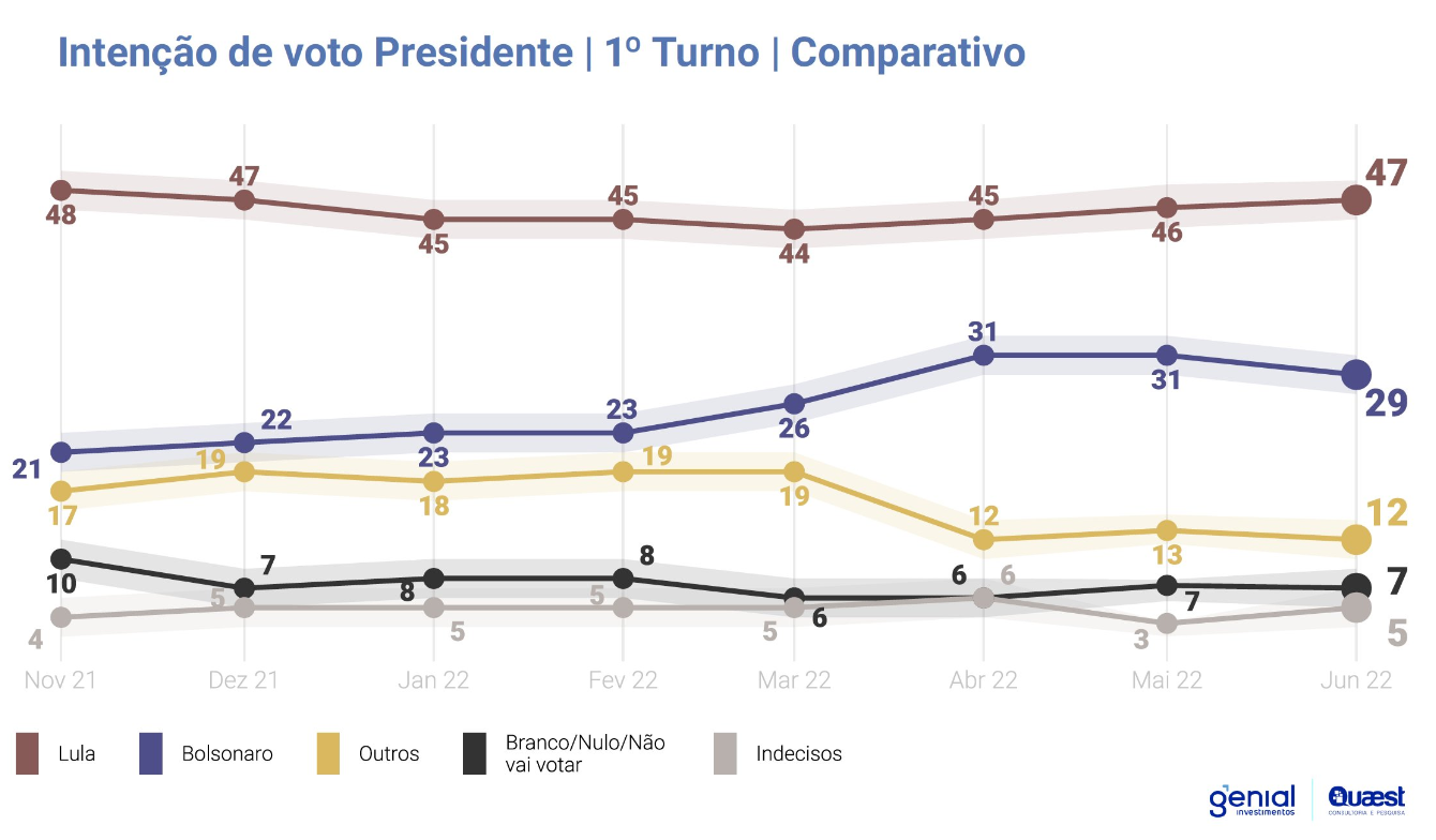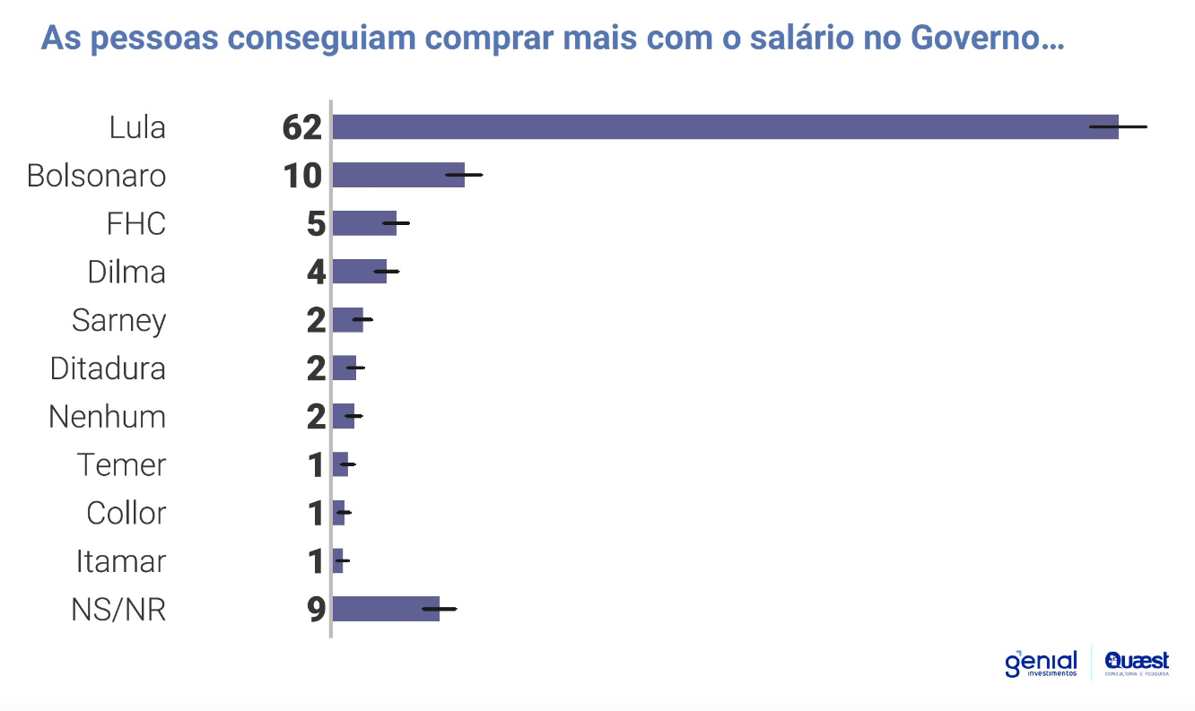 A pesquisa Quaest foi encomendada pela Genial Investimentos e realizada entre os dias 12 e 14 de setembro e ouviu 2.004 pessoas com 16 anos ou mais. A margem de erro é de dois pontos percentuais, para mais ou para menos, e o nível de confiança é de 95%.