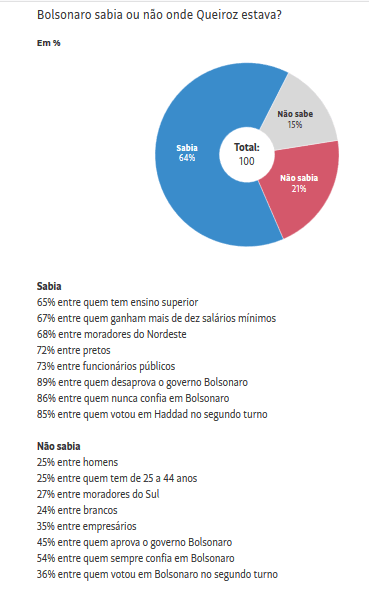 No grupo que sempre confia nas declarações do presidente Jair Bolsonaro, 61% são contra a vacinação obrigatória de todos os brasileiros, índice que cai para 45% entre aqueles que às vezes confiam, e para 31% entre quem nunca confia.