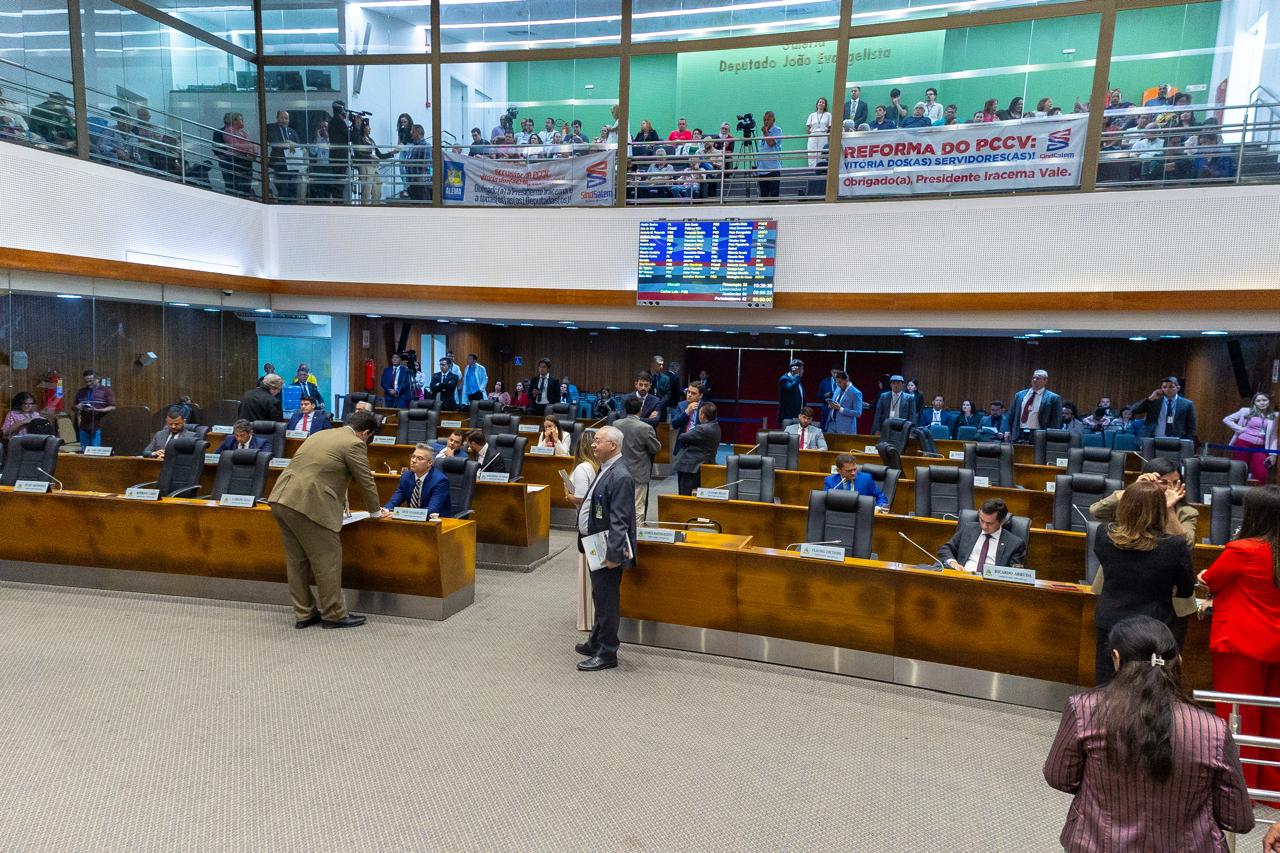 O Projeto de Lei nº 494/2024, que dispõe sobre o PCCV dos servidores efetivos da Assembleia Legislativa, foi votado em regime de urgência, por meio de um requerimento de autoria da Mesa Diretora, e aprovado por unanimidade pelos parlamentares dada a relevância da matéria.