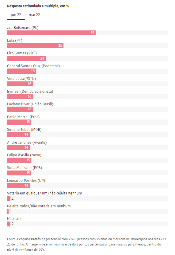 Temos tido surpresas nas eleições. Tivemos uma grande surpresa com o Fernando Collor. Outra com o Bolsonaro. Ninguém podia ter imaginado que Bolsonaro, em algum momento, pudesse ser presidente. Não dá para avaliar o que pode acontecer.