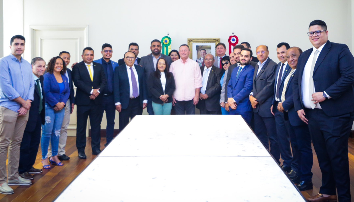 O governador Carlos Brandão (PSB), recebeu nesta segunda-feira, dia 6, no Palácio dos Leões, a maioria dos vereadores de São Luís. O grupo foi liderado pelo vereador Chaguinhas que assumiu hoje a presidência da Câmara Municipal, após o vereador tomar posse na Secretaria de Estado da Cultura.