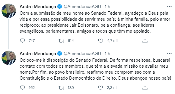 Ele foi advogado-geral da União e ministro da Justiça do governo Bolsonaro. Sua escolha pelo presidente foi parte da promessa de um nome com perfil de ‘terrivelmente evangélico’.